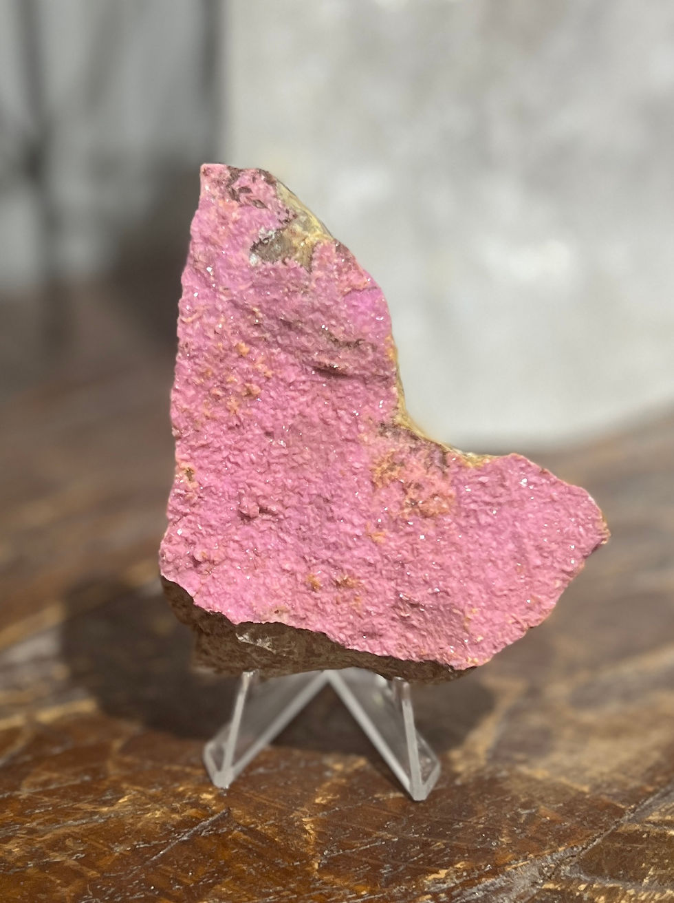 Sphaerocobaltite, also known as Cobaltite-Calcite, is a stone of unconditional love and forgiveness. It soothes intense feelings and supports love of self. This stone helps one find their innate talents, life purpose and helps with the formation of friendships. Its pink radiance speaks of liveliness and great joy. A palm size sphaerocobaltite can fill one's aura with great loving and magnetizing energy.