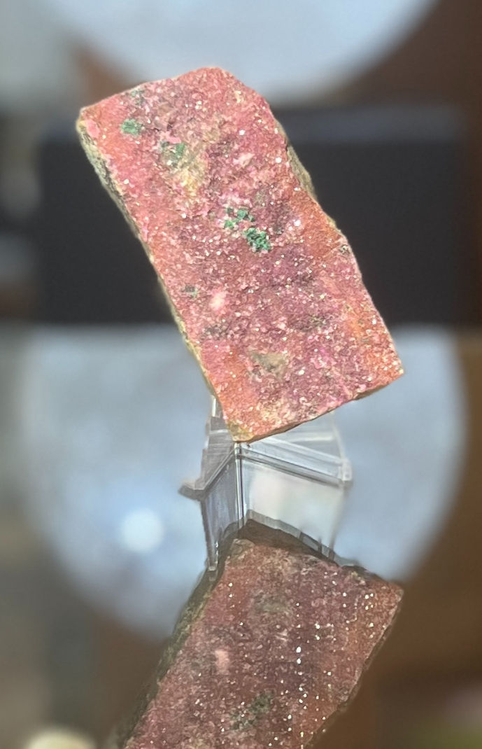 Sphaerocobaltite, also known as Cobaltite-Calcite, is a stone of unconditional love and forgiveness. It soothes intense feelings and supports love of self. This stone helps one find their innate talents,  life purpose and helps with the formation of friendships. Its pink radiance speaks of liveliness and great joy. A palm size sphaerocobaltite can fill one's aura with great loving and magnetizing energy.